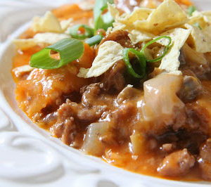Dinner tonight is the simplest little enchilada casserole recipe for your family. Simple, simple.