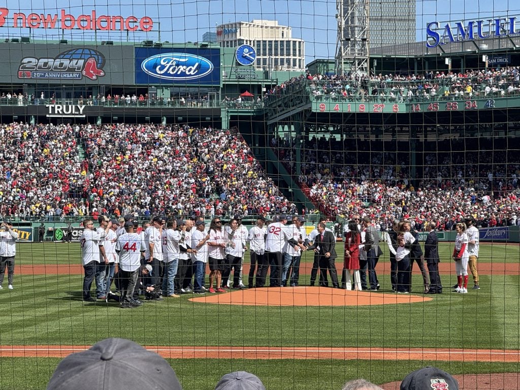 Leading up to Opening Day, they announced that two special things were going to happen. They were going to recognize the 2004 World Series team, twenty years after their curse-breaking season, and they were going to honor the lives of Tim and Stacy Wakefield. As you can imagine, I was STOKED to see David Ortiz, Johnny Damon, Jason Varitek back at Fenway, but I was also touched to learn they were going to honor Wakefield and his wife who both died recently of cancer. Both of them.