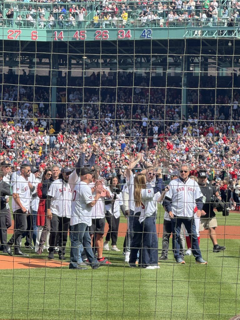 …Tim and Stacy Wakefield’s two children walked out with the entire 2004 team walking behind them. You guys, I cried. All of those big name champions stood behind those two kids and got ZERO recognition or honor. They stood behind the kids of their late teammate and his wife and let the entire ceremony be about them and not about themselves.