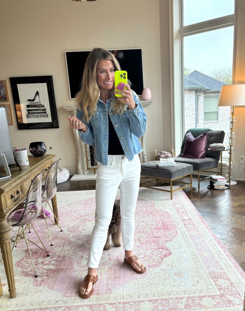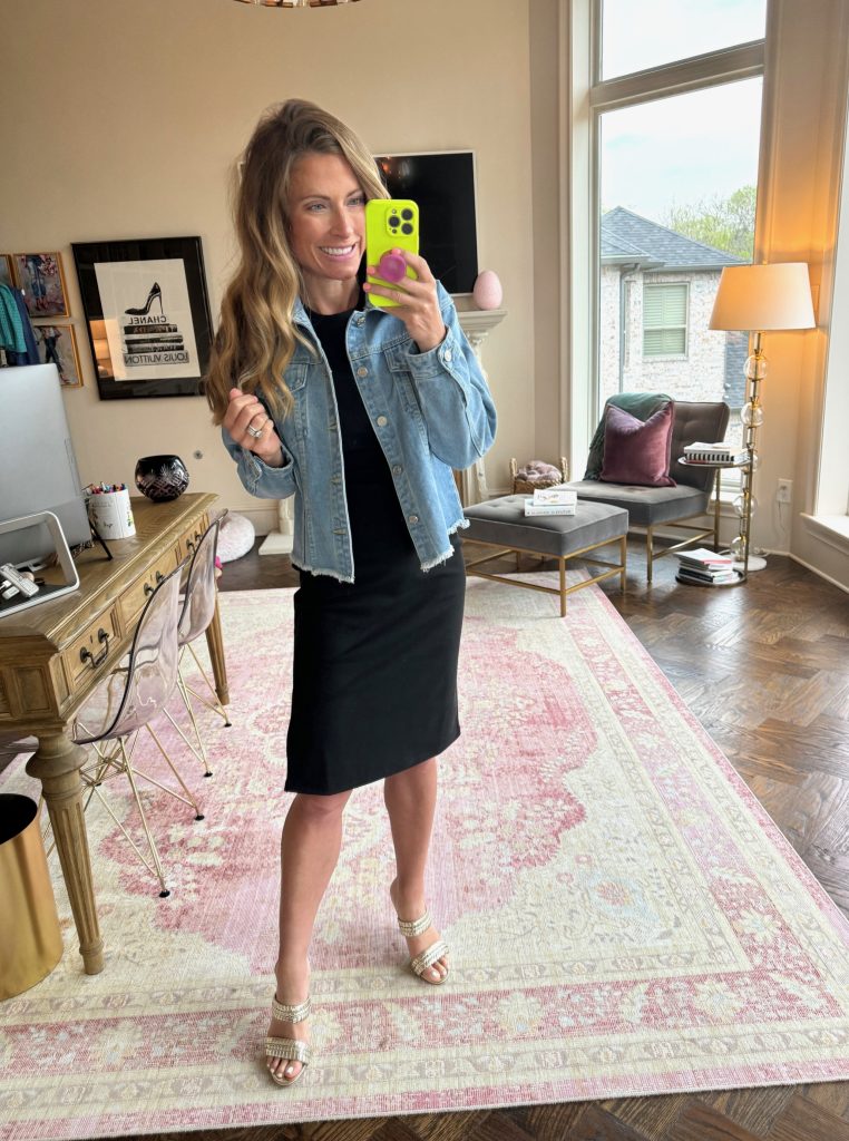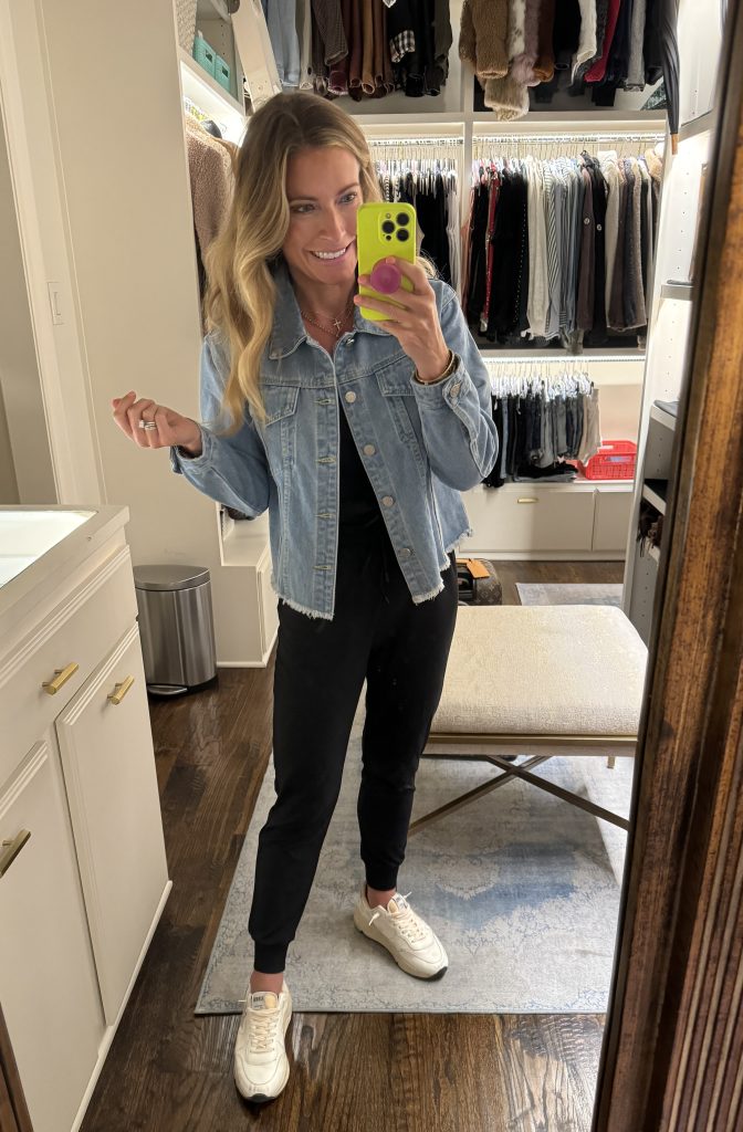…on Wednesday morning, I topped my Vuori jumpsuit with that DENIM JACKET again.