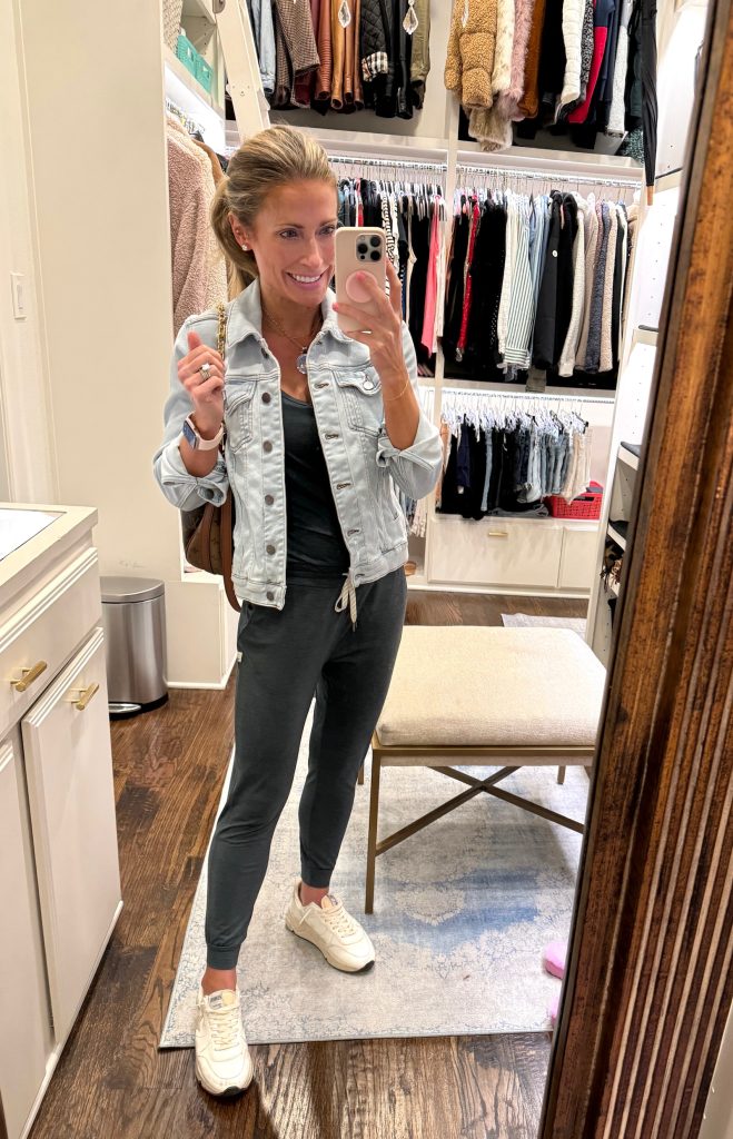 Do you have a link to the lighter Jean jacket with the jumpsuit?! So cute! ☺️