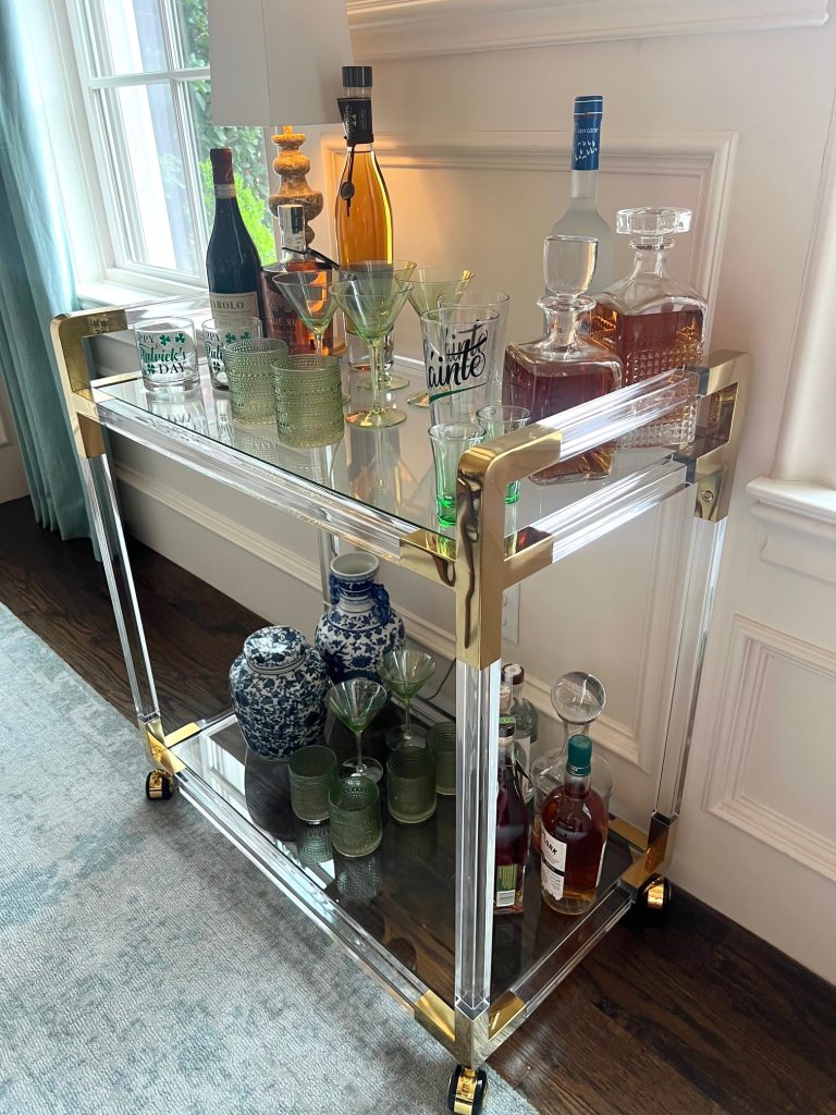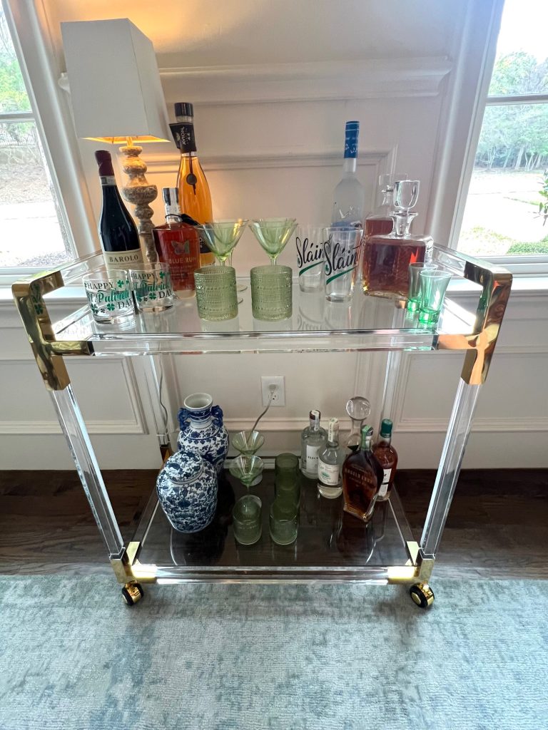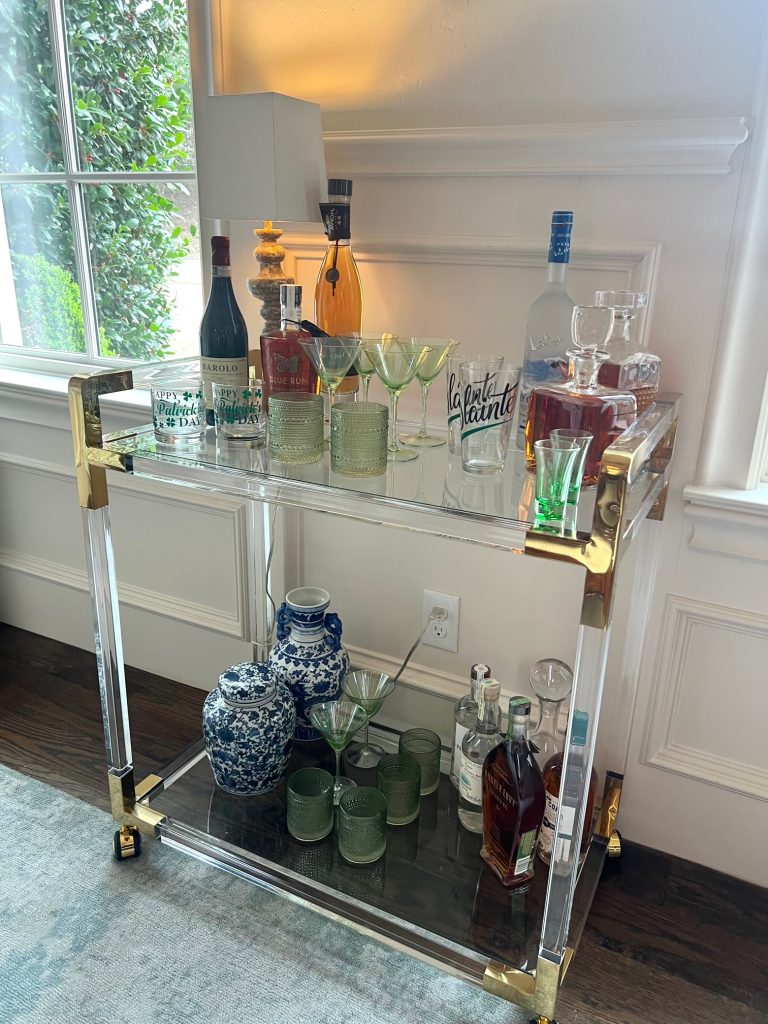 …how adorable is my BAR CART all decked for St. Paddy’s?!