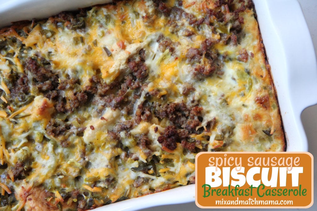 SPICY SAUSAGE BISCUIT BREAKFAST CASSEROLE