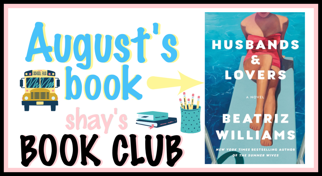 …we would love to have you join us on August 22nd for this month’s BOOK CLUB! We are reading Husbands & Lovers by Beatriz Williams.