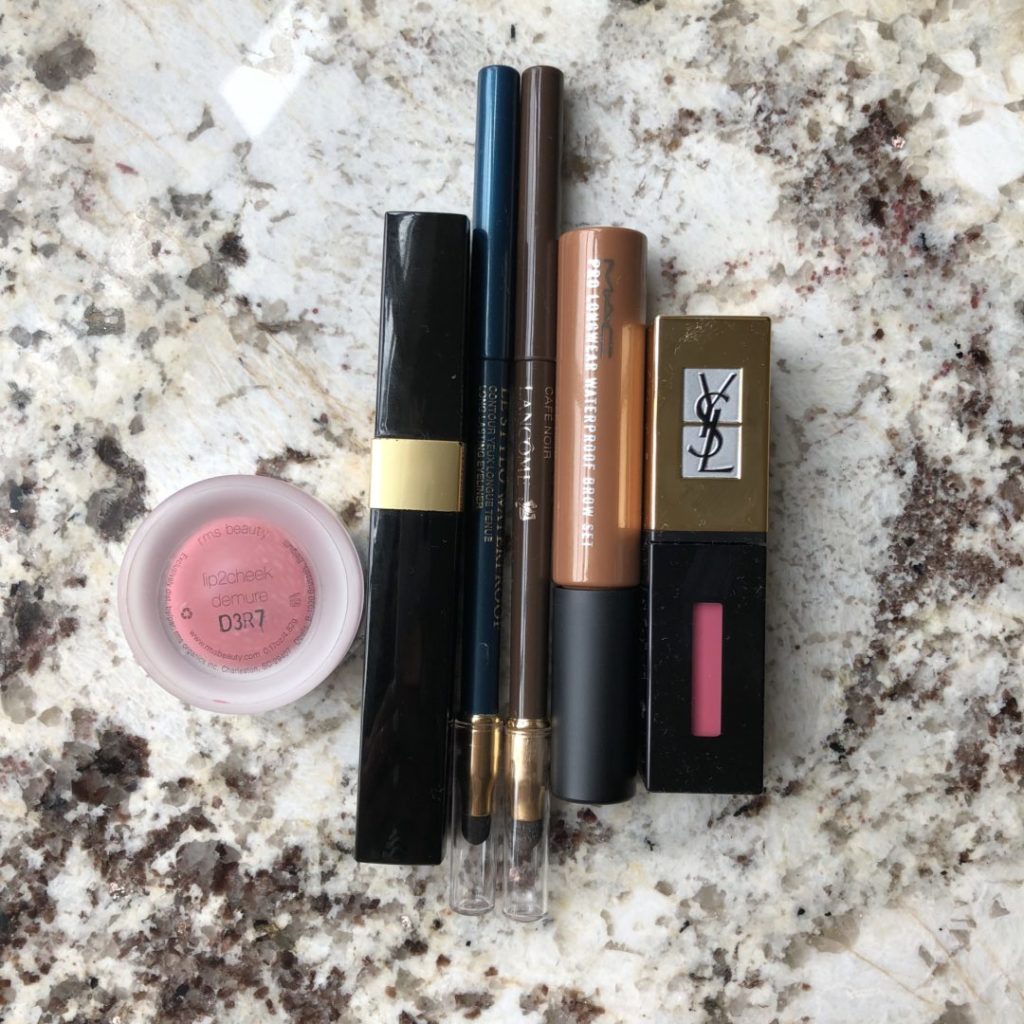 Last year, I fell in love with this eyeliner (I have always used the Cafe color but just recently bought Azure because it looks like summer) and the waterproof mascara, so this year, I added a waterproof brow set (in toasted blonde) and a lip stain and lip/cheek combo thing. Friends, I love them too! Now, the lip/cheek combo thing isn’t waterproof, but the reviews were so good that I tried it and it’s the perfect little finisher to my summer routine. It works on both lips and cheeks for just the right amount of color. I bought it in Demure but it comes in a gazillion colors. The glossy stain also comes in many colors and I bought Rose Vinyl.