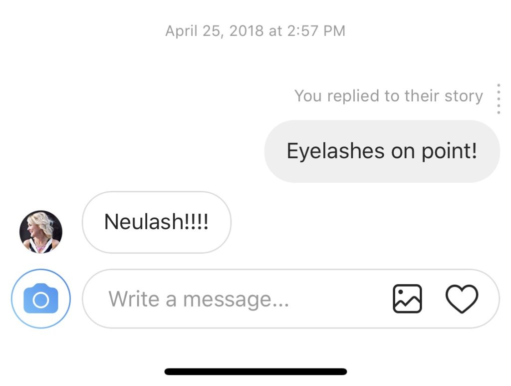 …my friend Cassie’s eyelashes were looking GORGEOUS on her Insta story, so as you can see above, I mentioned it and she said Neulash…which I had heard of but never tried.