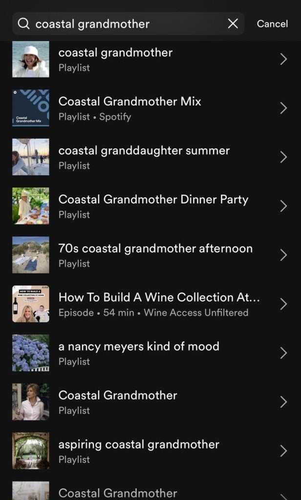 For two years now, I’ve been listening to some amazing “Coastal Grandmother” stations on Spotify. I *believe* it was one of you who turned me on to this genre, and I absolutely love it. It’s the perfect background music for work, cleaning up the house, folding laundry…it’s just fabulous! As you can see, there are many, many options!