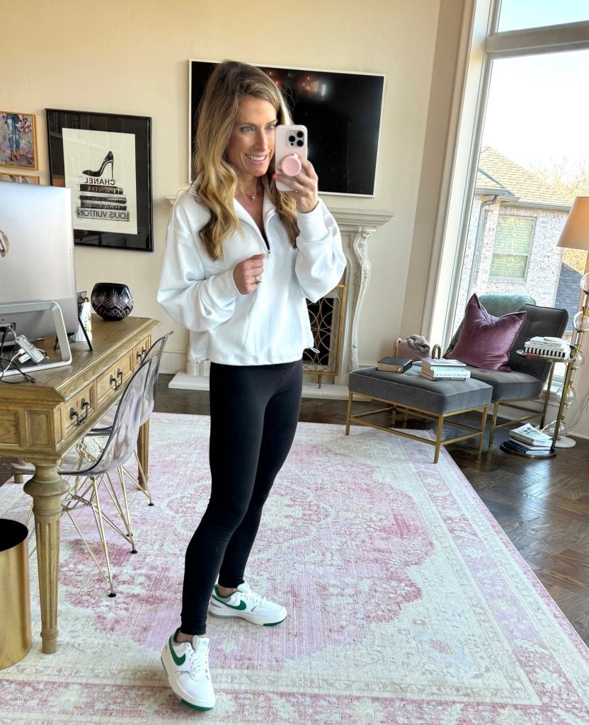 HALF ZIP PULLOVER + COMFY LEGGINGS + THE CUTEST SNEAKERS!