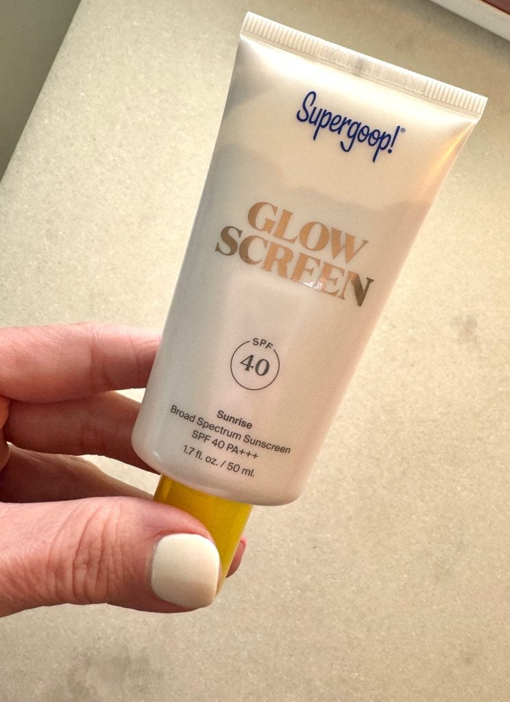 …SUPERGOOP GLOW SCREEN and use it as my “primer” every day (and have for yearssss!). Now, it comes in different shades, so it’s even easier to wear under your makeup for that bit of glow on your perhaps lackluster winter skin.