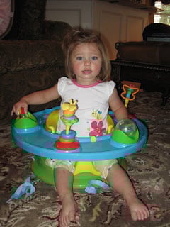 For 3 days, I kept telling Kensington to get out of Smith’s Bumbo activity center. I couldn’t believe she could fit in there in the first place. I would catch her in there, pull her out (she could get in but not out) and remind her that the play center was Smith’s. Finally on the third day, she looked at me and said “Smith share”. And she was right. I’m always telling Kensington that she has to share her toys and blankets with Smith, so she was reminding me that he needed to share his toy with her. So, if you come to my house and see my 20 month old in a toy designed for babies up to 6 months old, then you know why…because Smith needs to share.