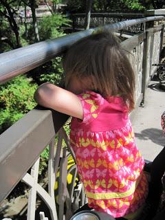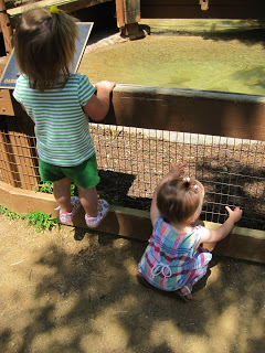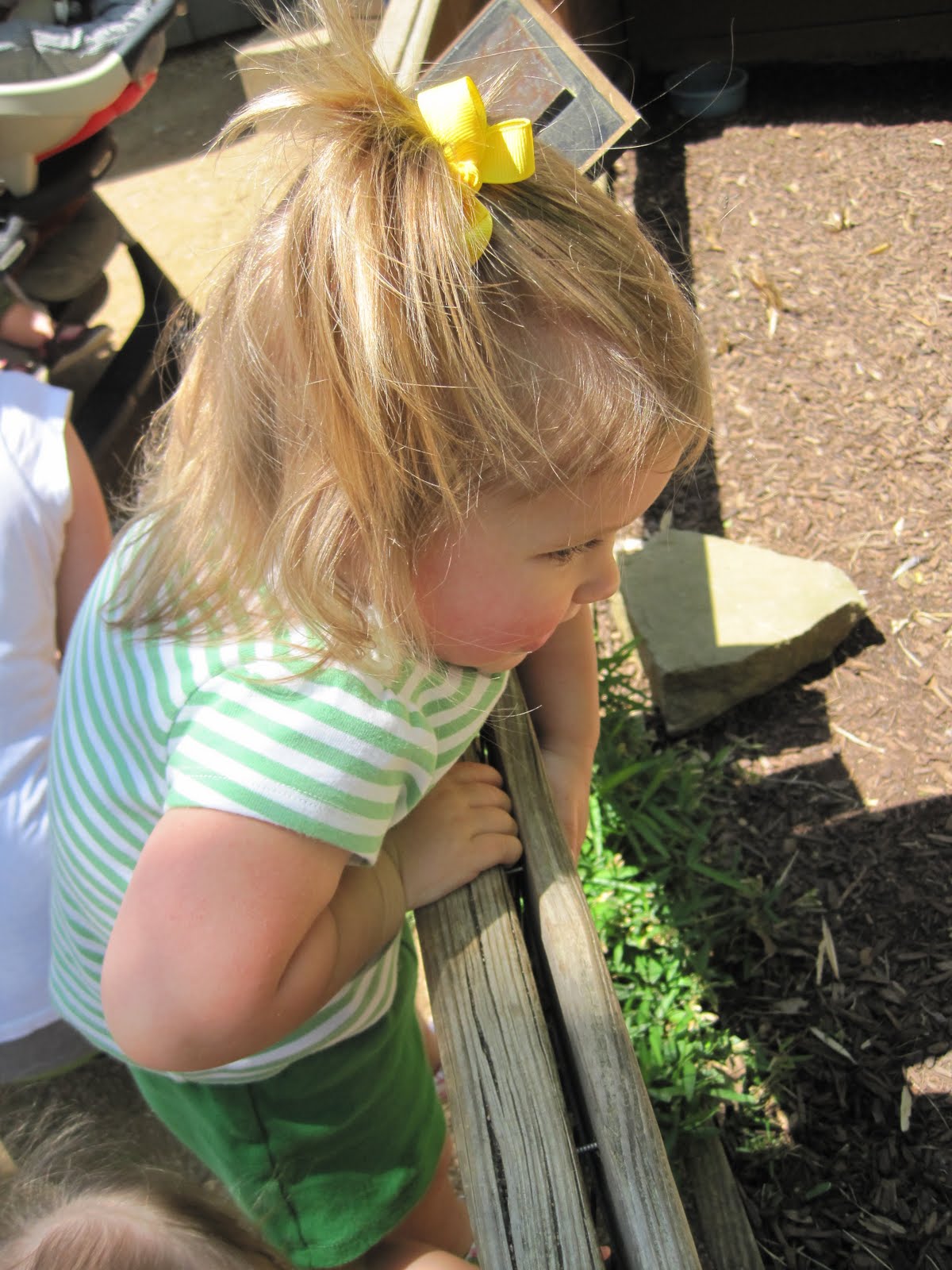 Kensington and Molly looking at the ducks. You’ll notice that Kensington is in different clothes now. Luckily, I brought a spare pair. In between these pictures, we went to the kids play area where they could splash around in water…she was sopping wet.