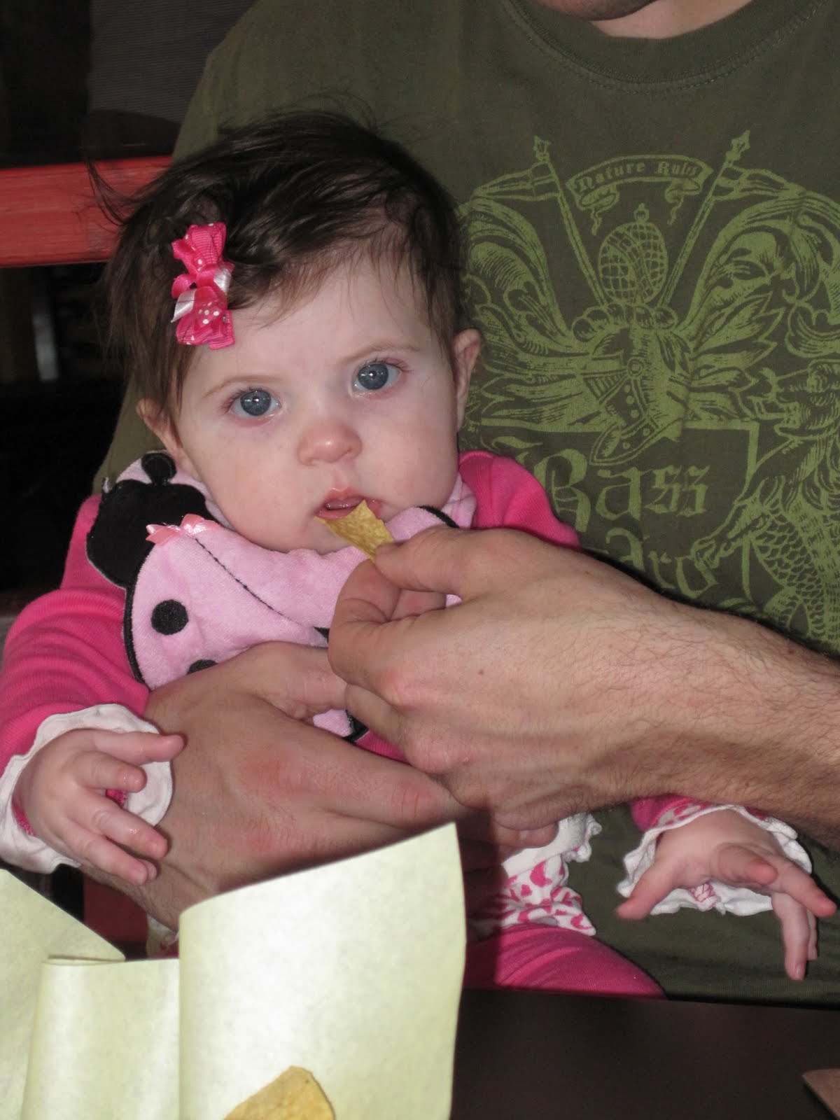 Sylvia (5 months) enjoying a lick of salty tortilla chip