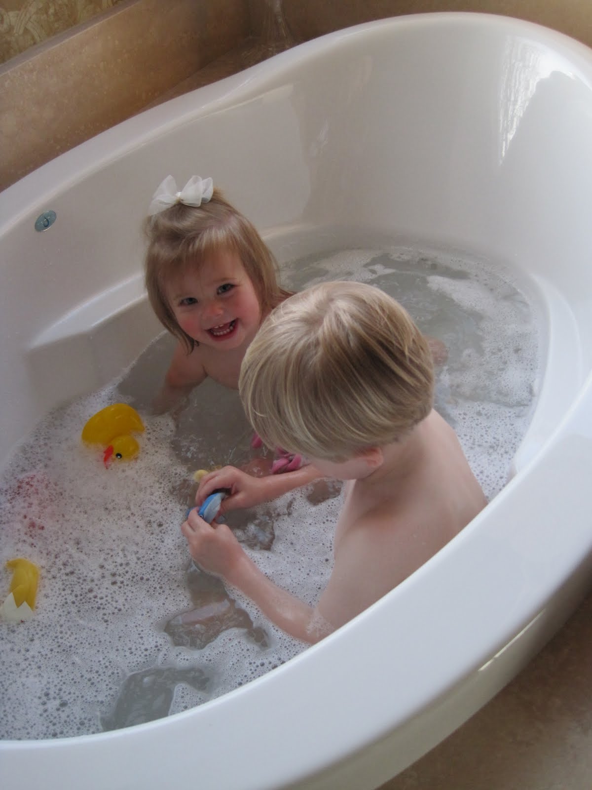 Brode and Kensington (18 months apart), really played well together. They had lots of fun in our new tub.