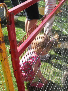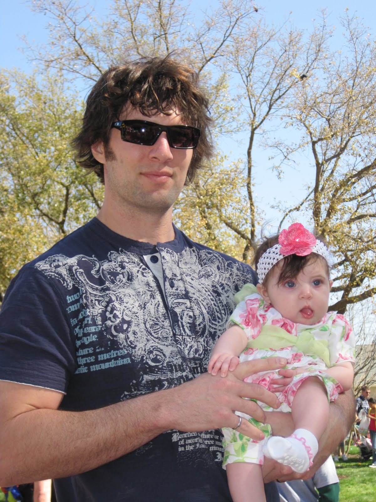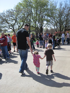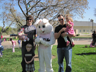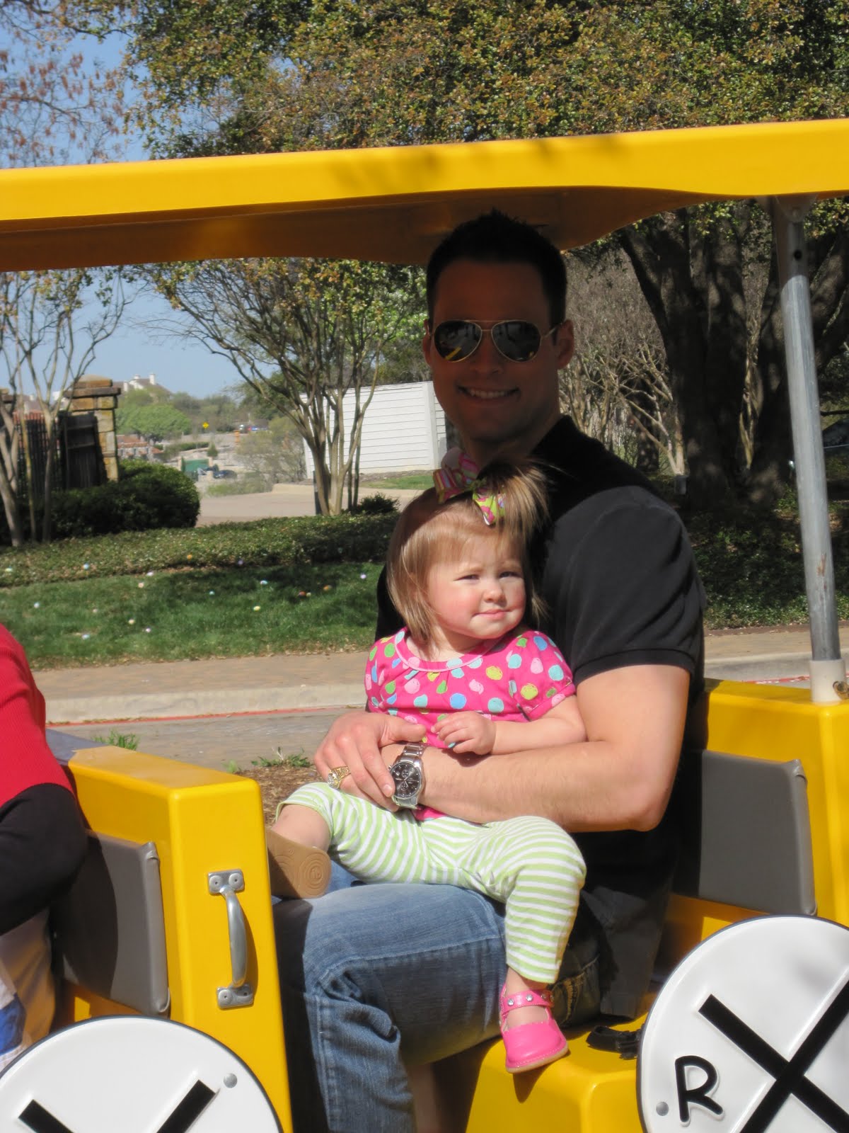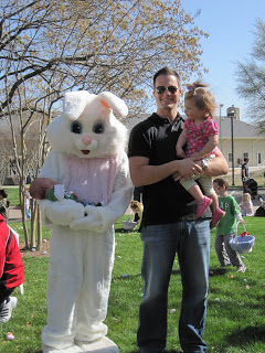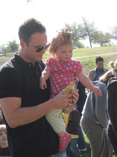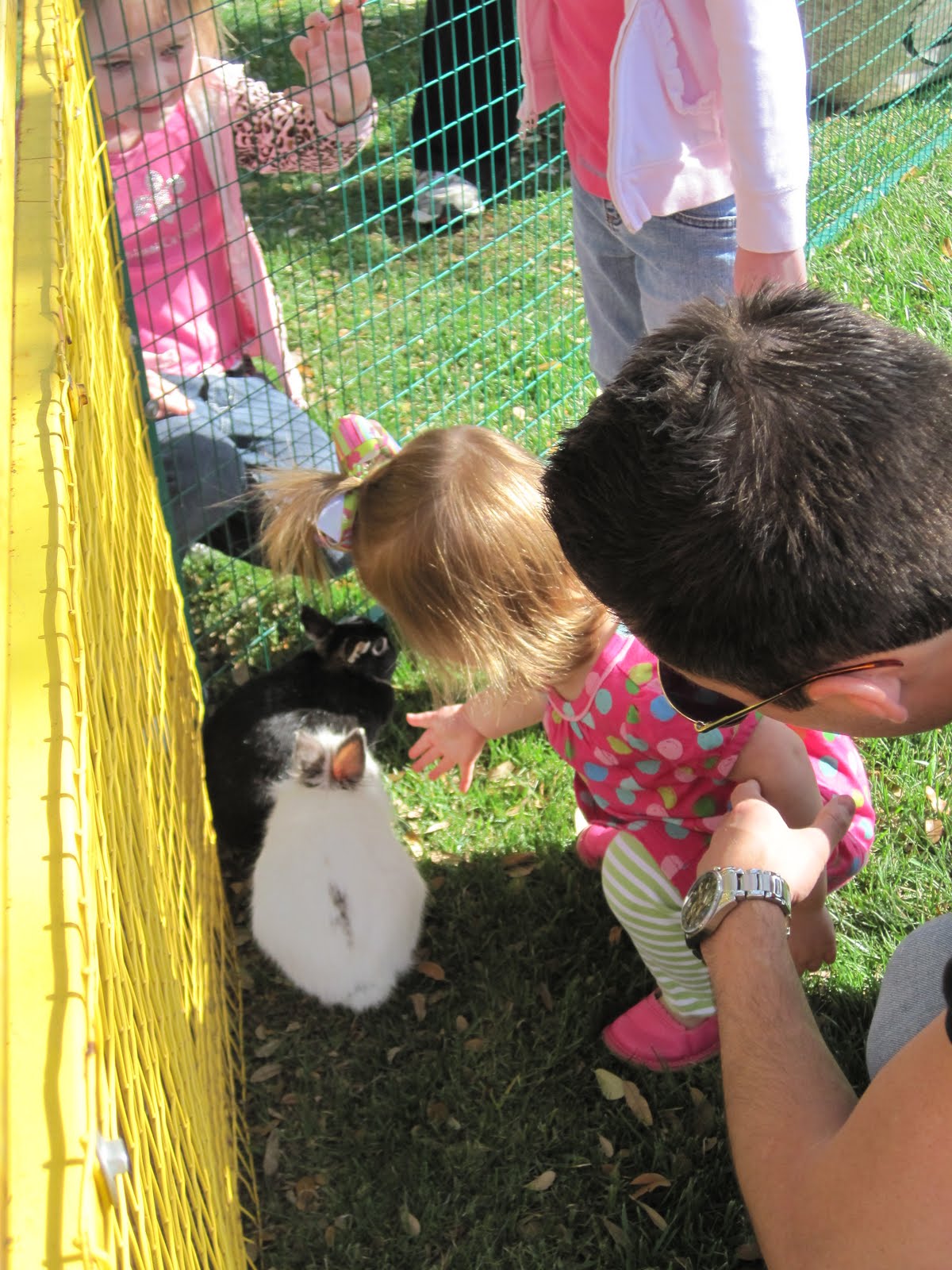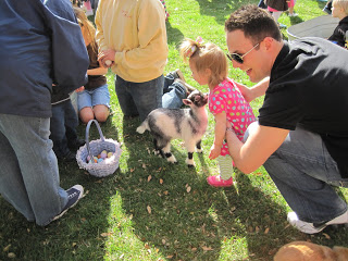 My favorite part of the weekend was Saturday morning. We went to an Easter festival in our neighborhood. There was a petting zoo, train ride, bounce house, face painting, egg hunt, and tons of candy. Kensington loved this baby goat. She kept calling it a doggy.