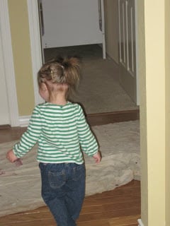 Don’t you love the painters tarps all over our floors…construction will be complete tomorrow…praise the Lord! The “tail” aged her so much!!!