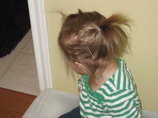 Not the cleanest ponytail but it was the best I could do. She still has a lot of baby hair that is short…as you can see, I stuck a bobby pin in for support.