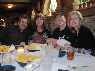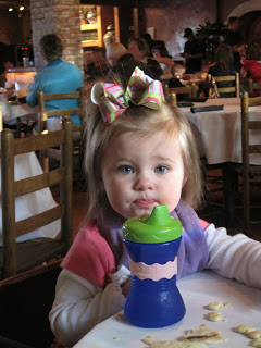 Andrew, Shay · March 15, 2010And 6 years later… We spent a fantastic Saturday celebrating our 6 year anniversary. My parents watched our kids while Andrew and I went and got pedicures (yes, my man loves a pedicure) and had brunch. I love this face!!! Then we had dinner at Joe T. Garcia’s with our favorite and dearest friends, the Masseys. My mom is going to kill me for posting this picture… But my dad will do anything to make his granddaughter smile (even putting a tortilla on his face)… She loved it!