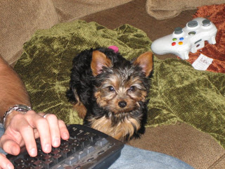 My sweet cousin Brandon and his adorable wife Casey are the proud new parents of little Pebbles. We’ve been begging Brandon to let Casey get a dog for over a year now, and he finally caved in. But…we all know that he is so happy with his little yorkie and is so glad he has her.
