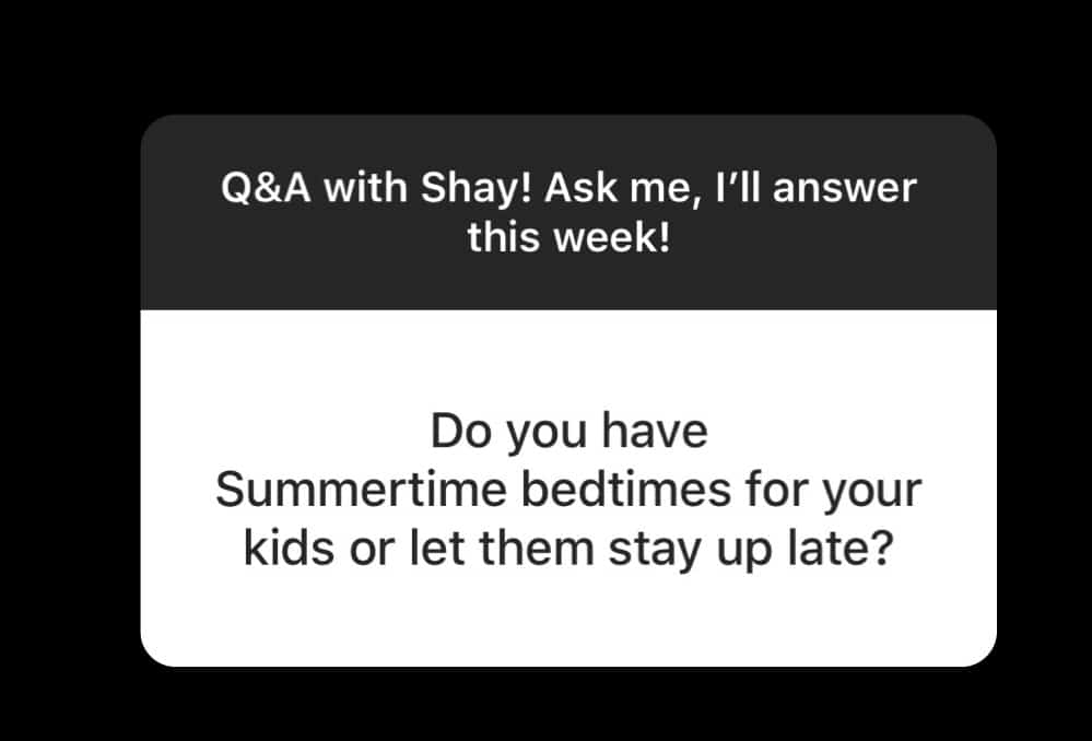 Nah. I mean, Andrew and I like to be asleep by 10:15ish, so the kids go to bed before that, but I try not to be too strict about it this time of year. During the school year, we aim for 8:30 every night, but during the summer, we’re more relaxed. That being said, if we have somewhere to be early/need to get up, they’ll go to bed earlier.