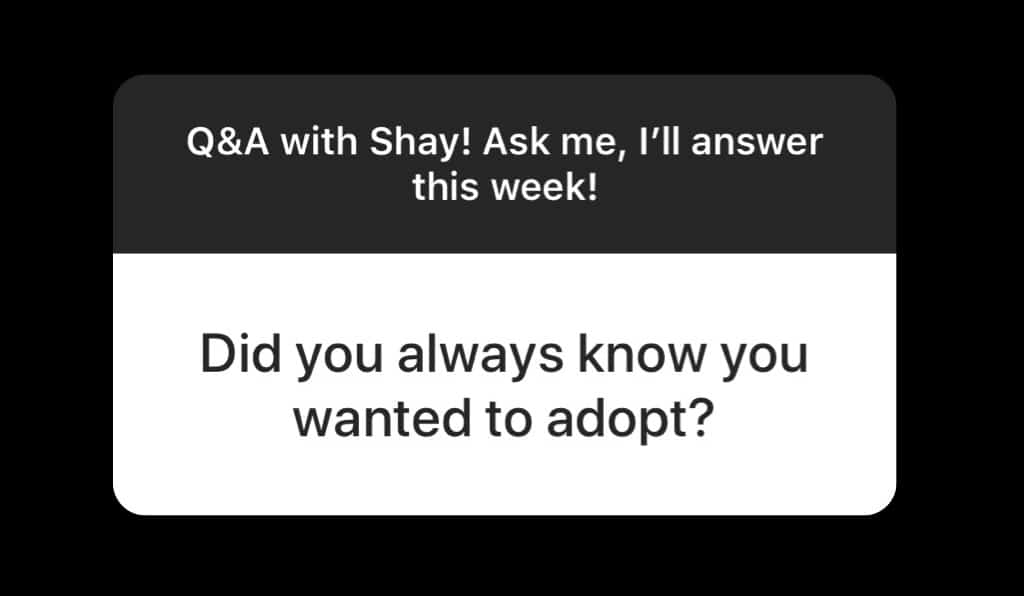 Nope. I never had a clue that I should adopt until I heard a sermon at church about it one day and then it was like a lightening bolt came down from the sky and hit me. I was a fan of other people adopting, but I never thought I was supposed to until that day…and I’ve never looked back since.