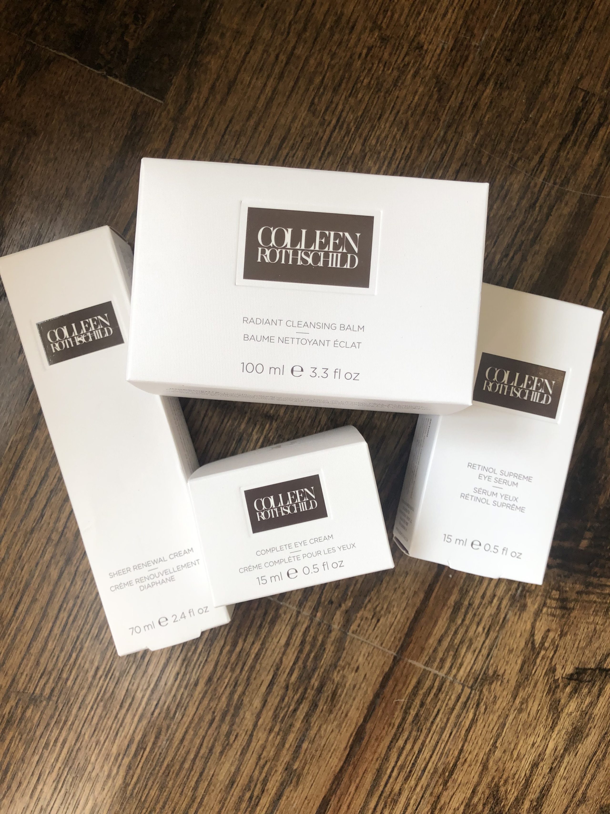 …this is what I’ve been using: SHEER RENEWAL CREAM, COMPLETE EYE CREAM, RETINOL SUPREME EYE SERUM, and RADIANT CLEANSING BALM.