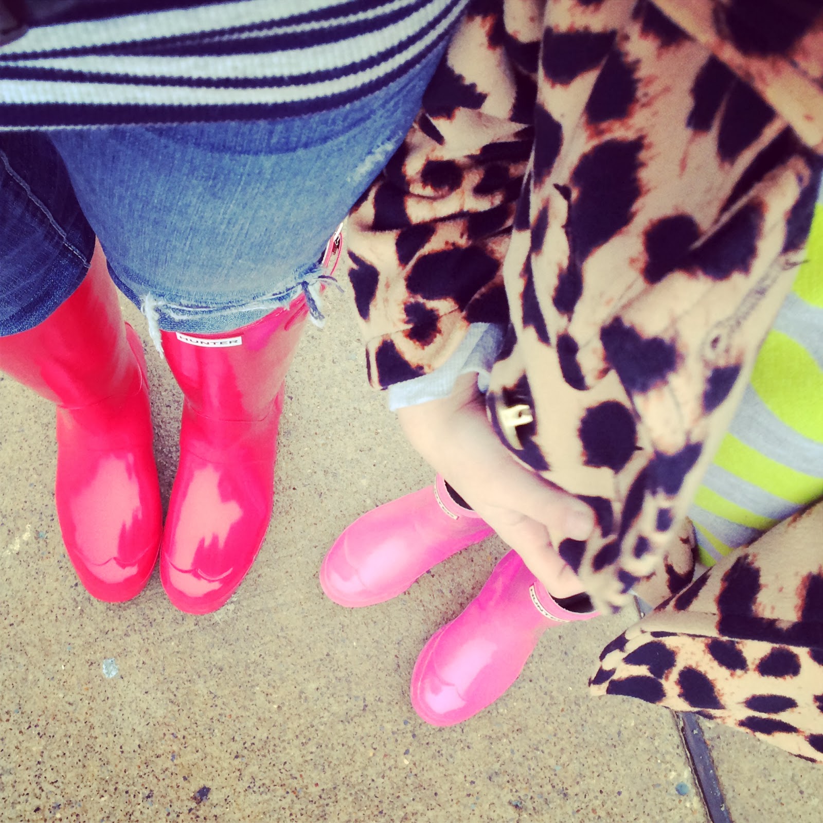 Day 9: Still raining! Under our umbrellas, we took a picture of our mother and daughter Wellie feet :).