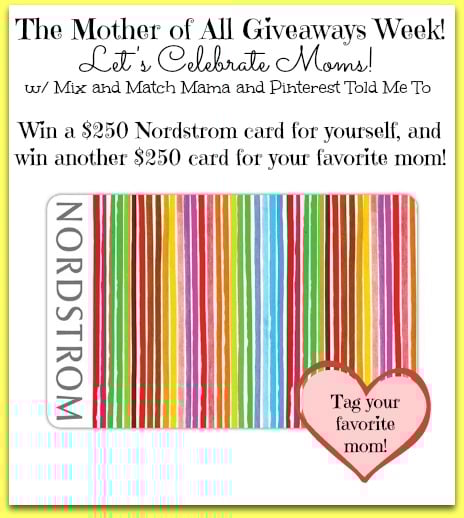 Woohoo! Today, one winner will receive a $250 Nordstrom gift card for herself and one to give her favorite mama!