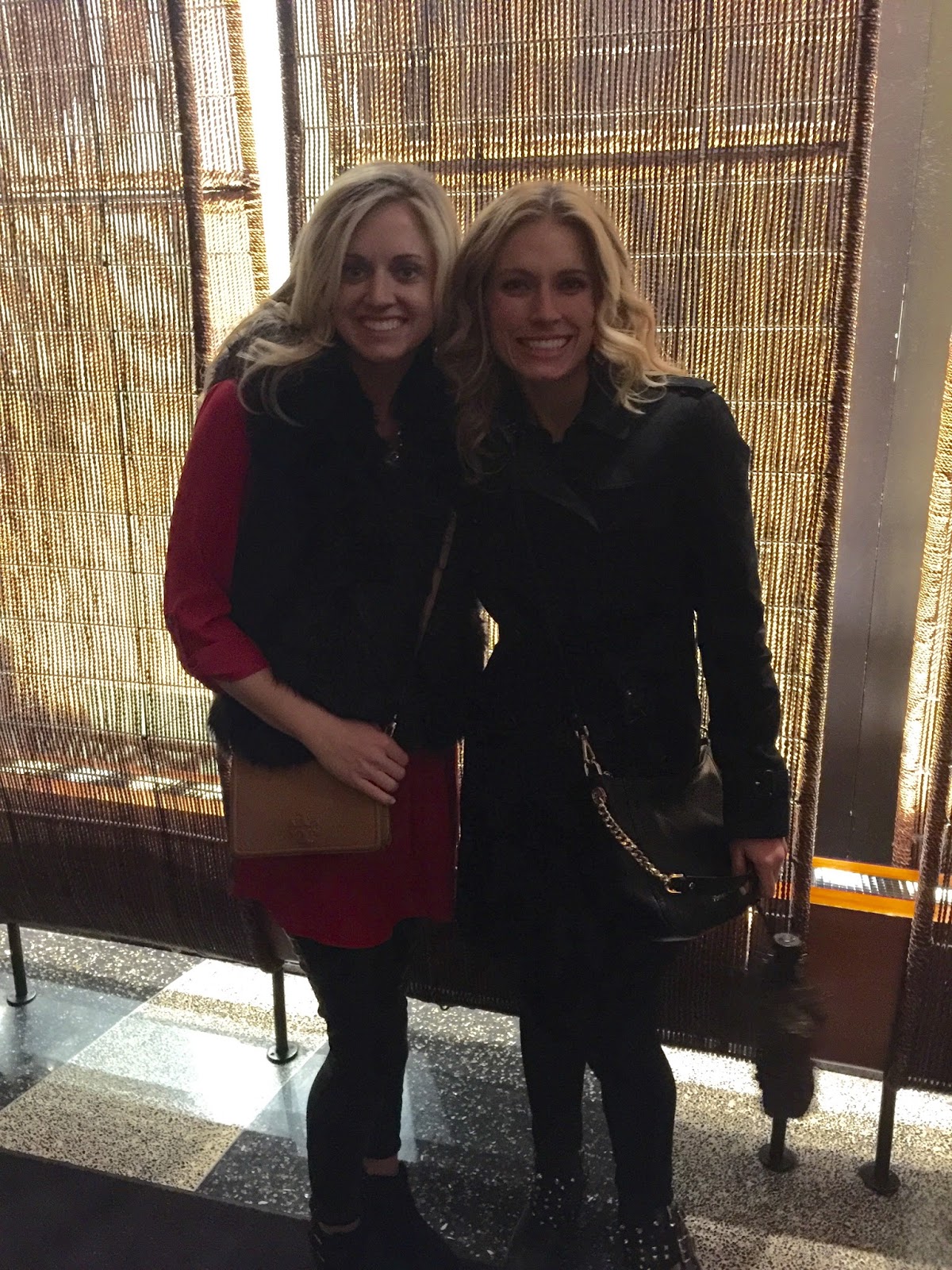 We had an amazing steak dinner at The Strip House. The creamed spinach was life changing. The restaurant was a nice spot for us to thaw out after being outside in our dresses in the weather. We were laughing as we were walking to the restaurant because everyone else was dressed appropriately outside (boots, coats, hats, scarves…lots and lots of layers!) and we looked ridiculous. Cute…but ridiculous :).