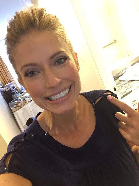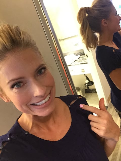 Now, Today said they would do my hair and makeup or touch up…my choice. I decided to have my hair and makeup done in our room and then let Today touch up once I arrived (that way, we didn’t have to hurry). I had read about Glam Squad in Instyle magazine, so I downloaded the app a few weeks ago and booked a hair and makeup appointment. Right at 7:30, two angels appeared and glammed me up for my big day. I was a little nervous using them (because I didn’t know anyone who had used them before)…but figured if it all went wrong, I could politely ask the people at Today to fix it. However, it all went right! I loved Glam Squad :).