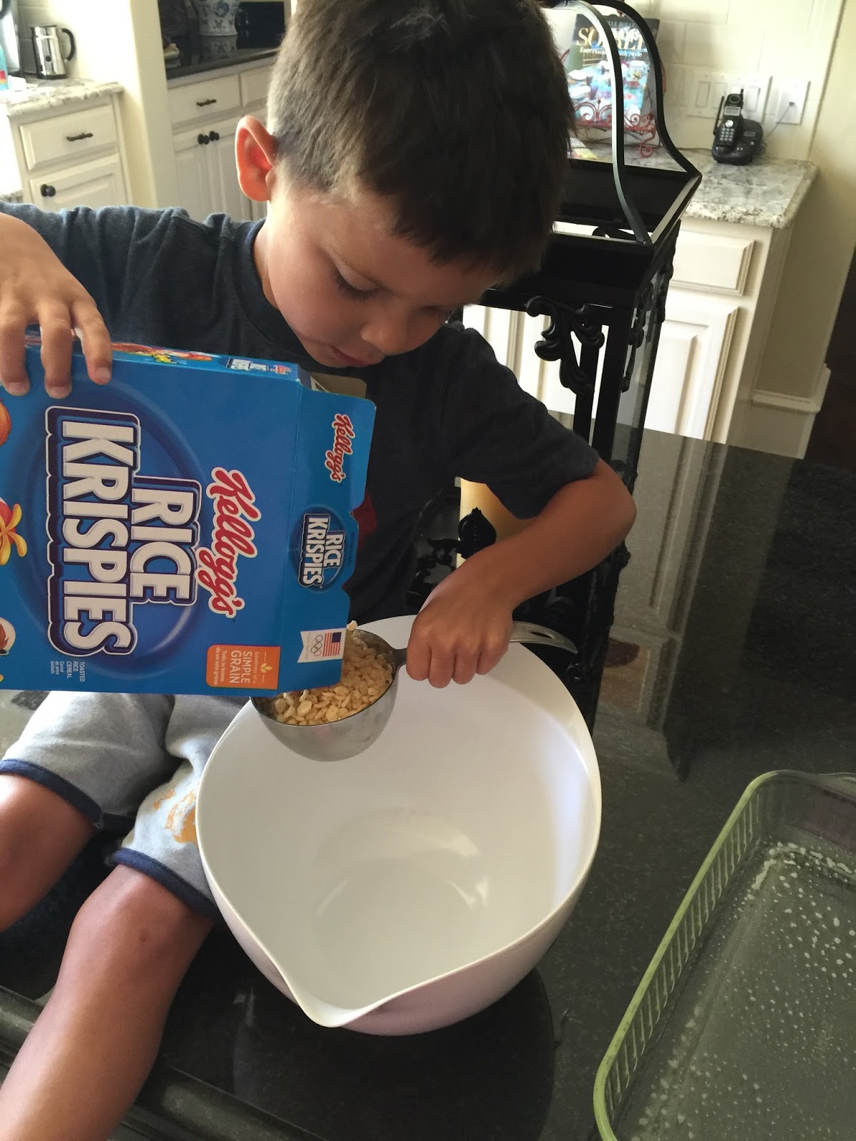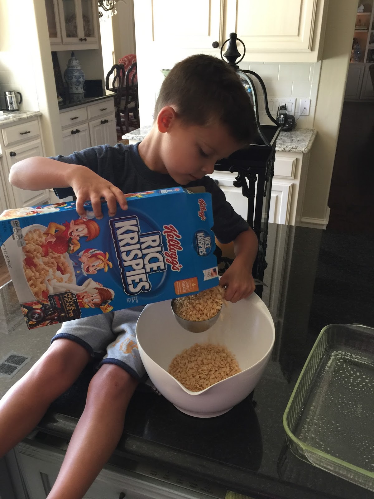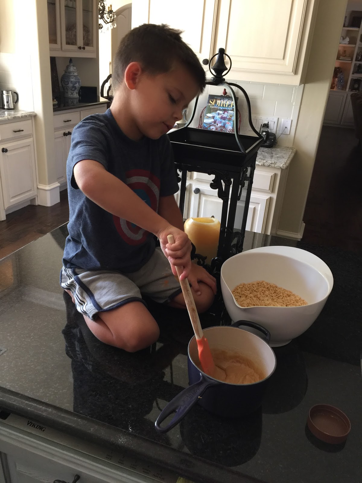 It's so sweet that he wants to be cooking in the kitchen with you. We love these bars and sometimes drizzle chocolate on top for a little extra deliciousness 🙂