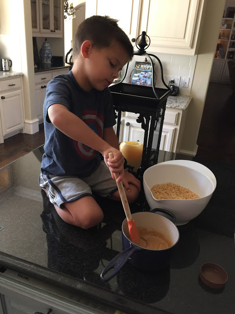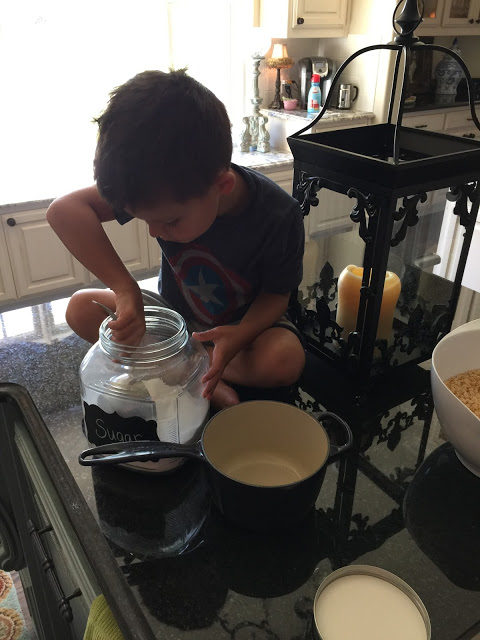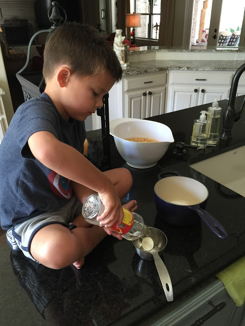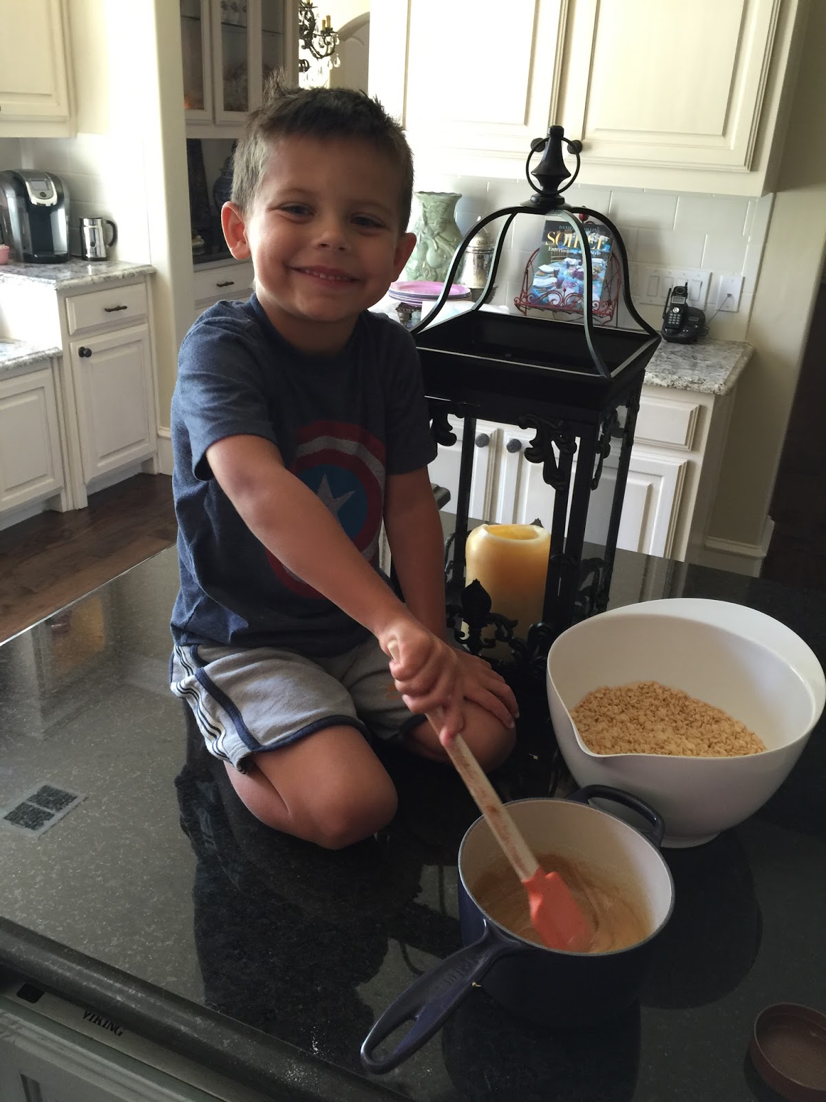 Well, they are Smith’s favorite and he kept telling me how he could make them by himself too, so the other day when Kensington wasn’t home, we had time in the kitchen just the two of us and I let him “make” them (I did the stove part since he’s only five, but he did the rest!). I love having my boy in the kitchen with me :).
