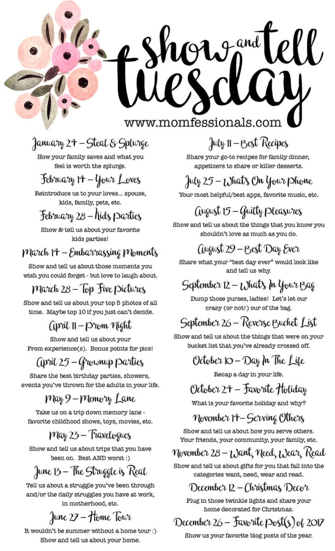 To see what’s coming up next on Show & Tell Tuesday, look below…