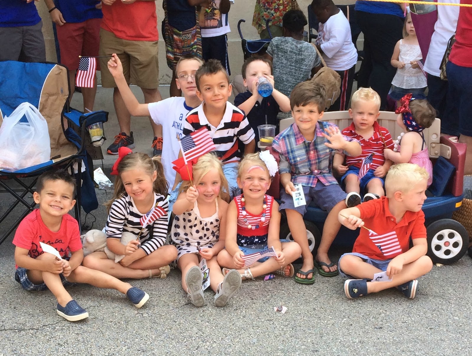 Our patriotic crew …Smith, Kensington, Ebby Lee, Presley, Nixon and on the back row, Griffin, Bowen, Luke, Mason, Luke and Jackson