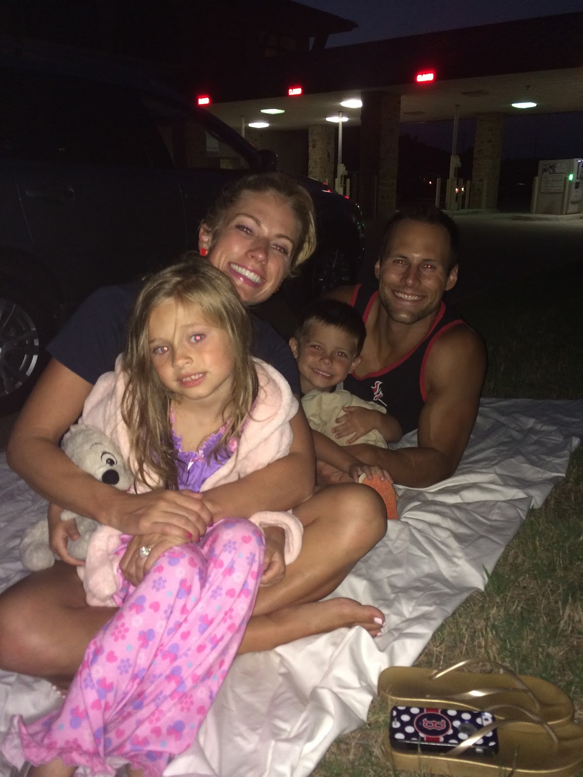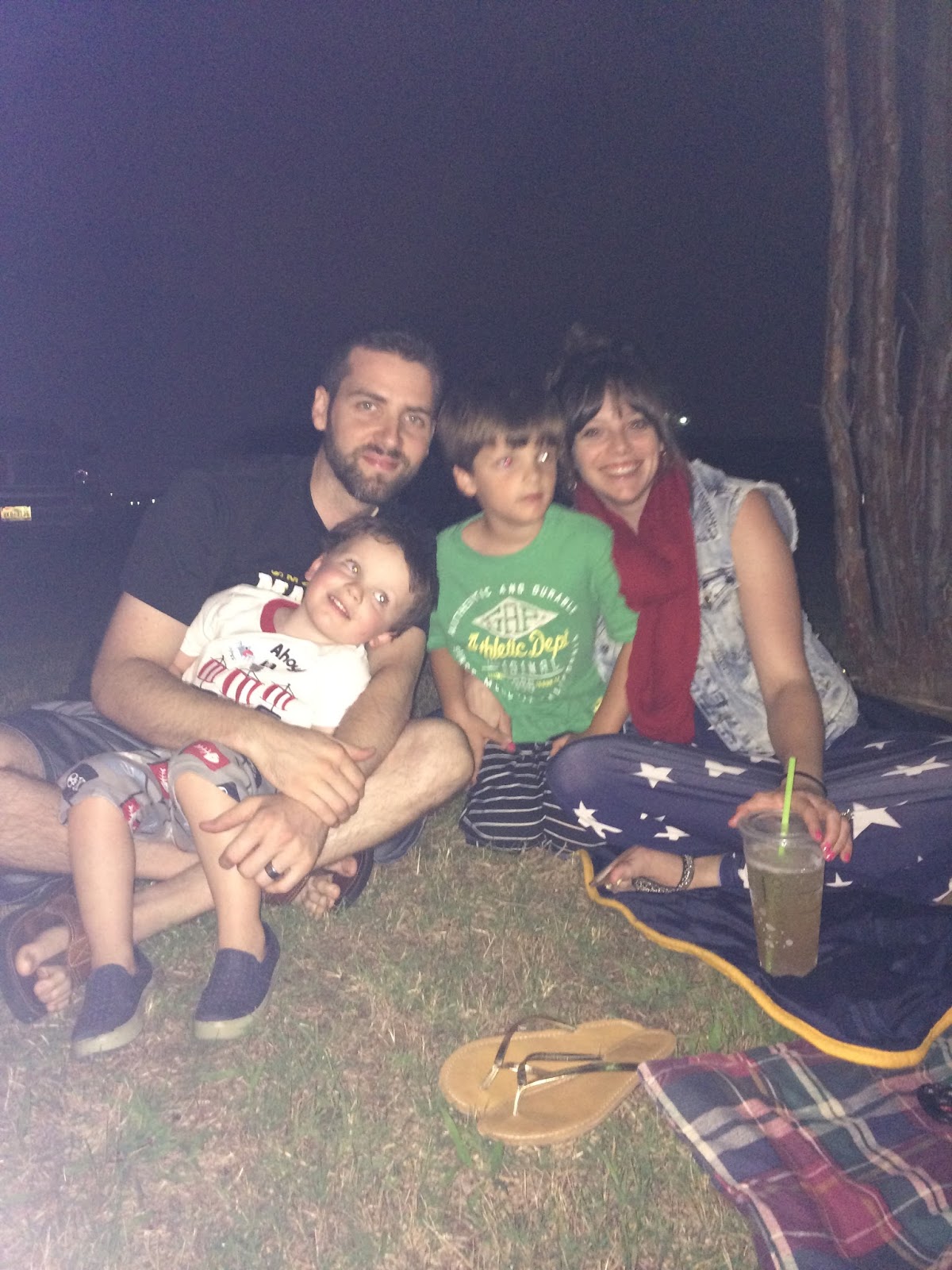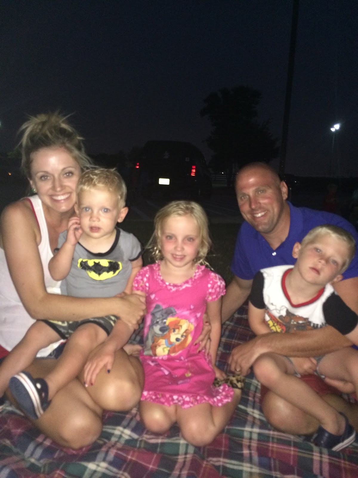 We left my parents’ house and drove home to bathe the kiddos. After that, we put them back in the car and met the McAnallys and Slaughters to see the fireworks.