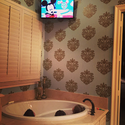 Love this! And love that Mickey Mouse Clubhouse is on during bath time! My (almost) 2 year old is obsessed with that show, and it would make bath time so much easier if he could watch it in the process of getting clean 🙂