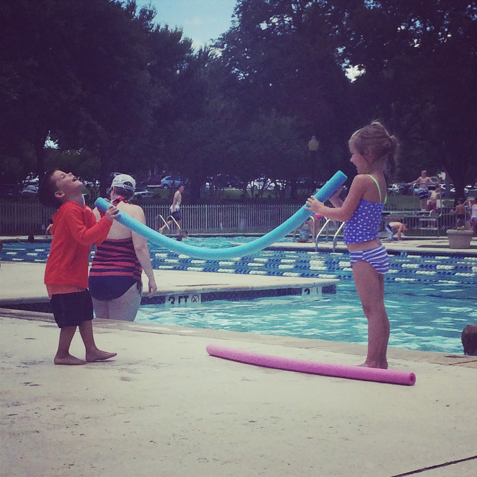 Nothing says summer like blowing water at each other through a pool noodle. These two kids crack me up constantly. The three of us went to the pool on Tuesday and they had more fun doing this than swimming :).