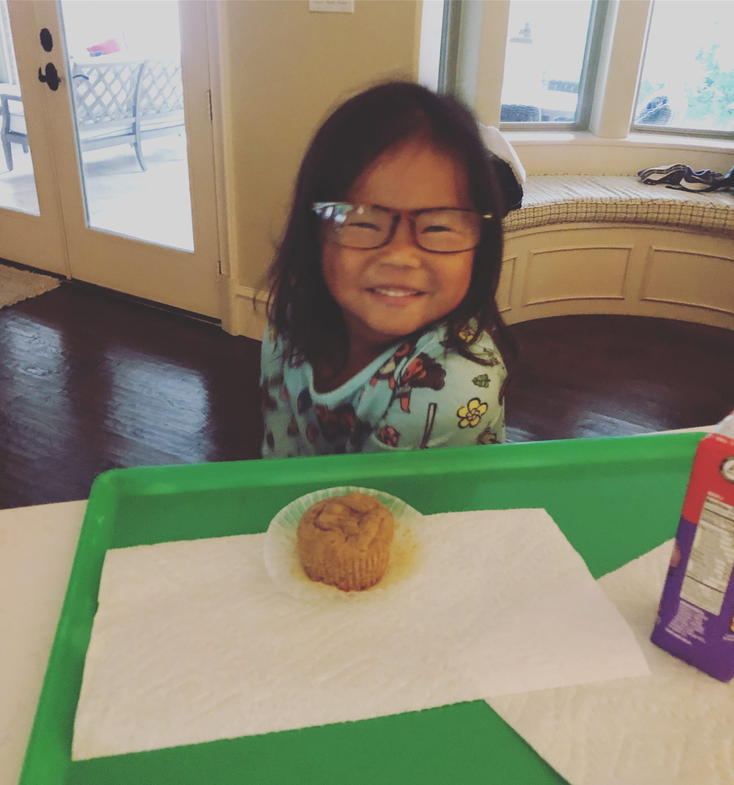 Sunday mornings call for homemade muffins and fake glasses. This kid.