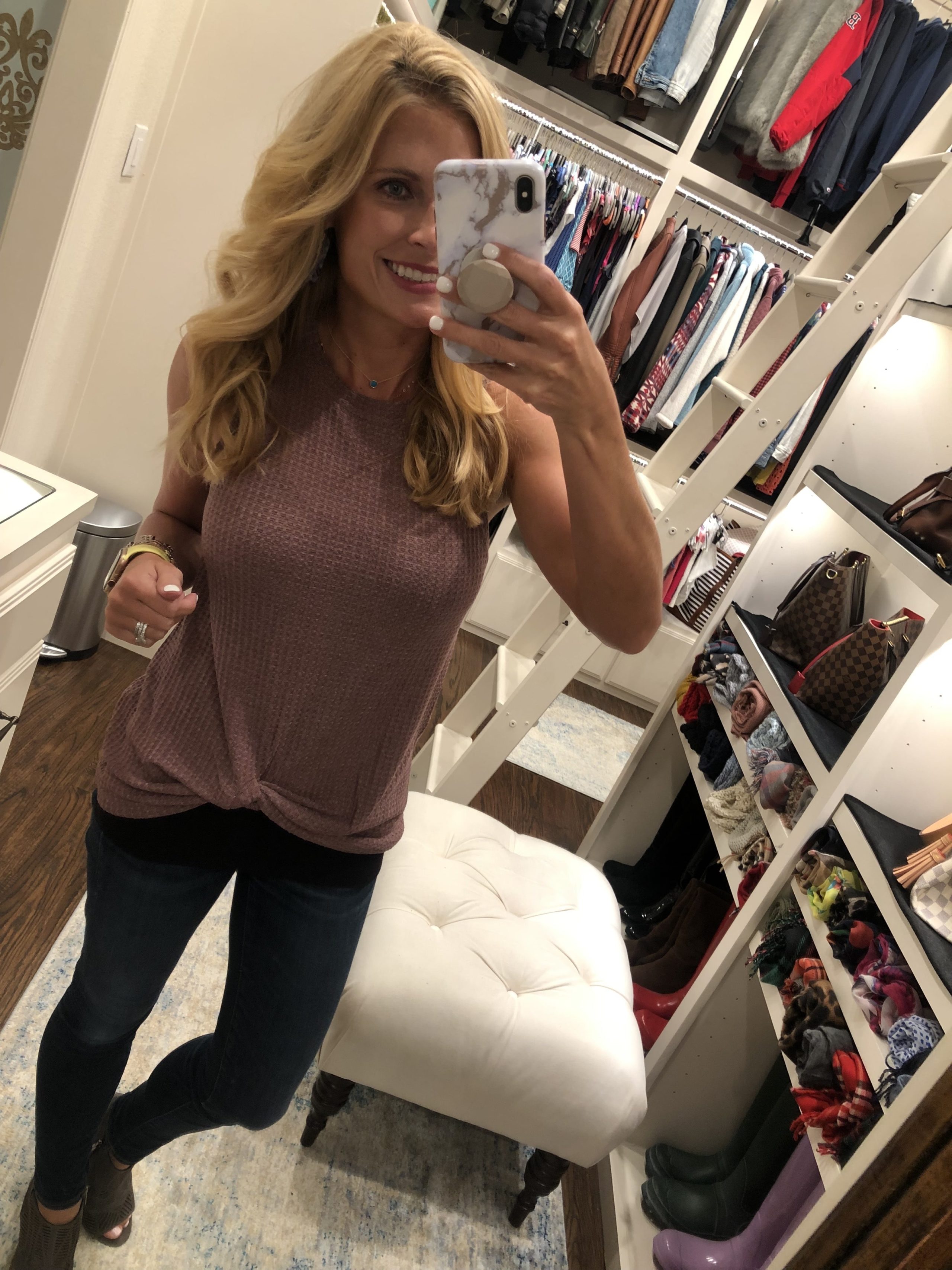 Okay, my friend Brooke texted me and told me to buy this top because it’s the PERFECT transition piece…