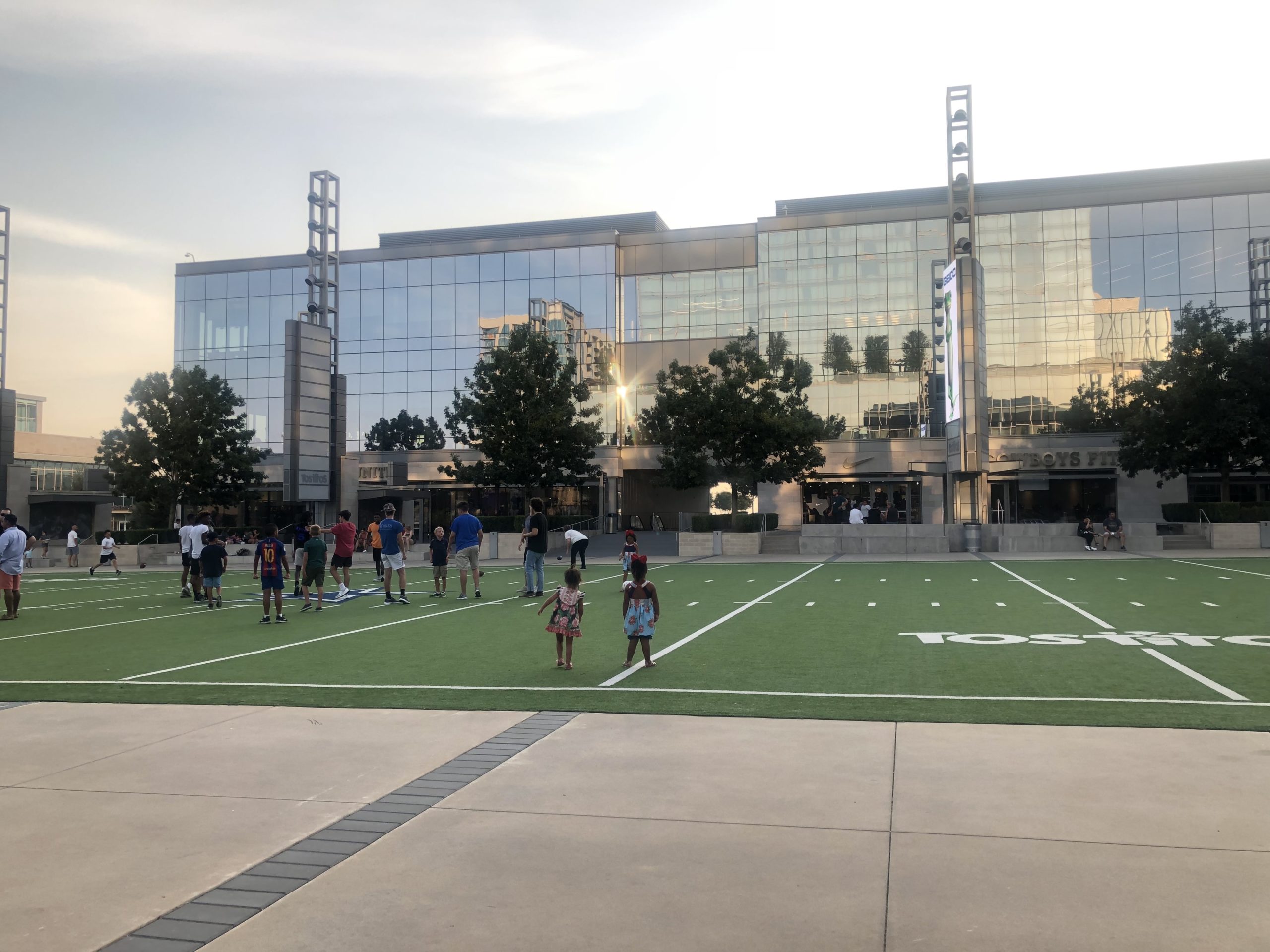 On Friday night, we went to The Star in Frisco to celebrate Erika’s birthday! If you haven’t been to The Star, you should really check it out. Remember when we went at Christmas? It was so FESTIVE! It’s a great place to eat and let your kiddos run around…