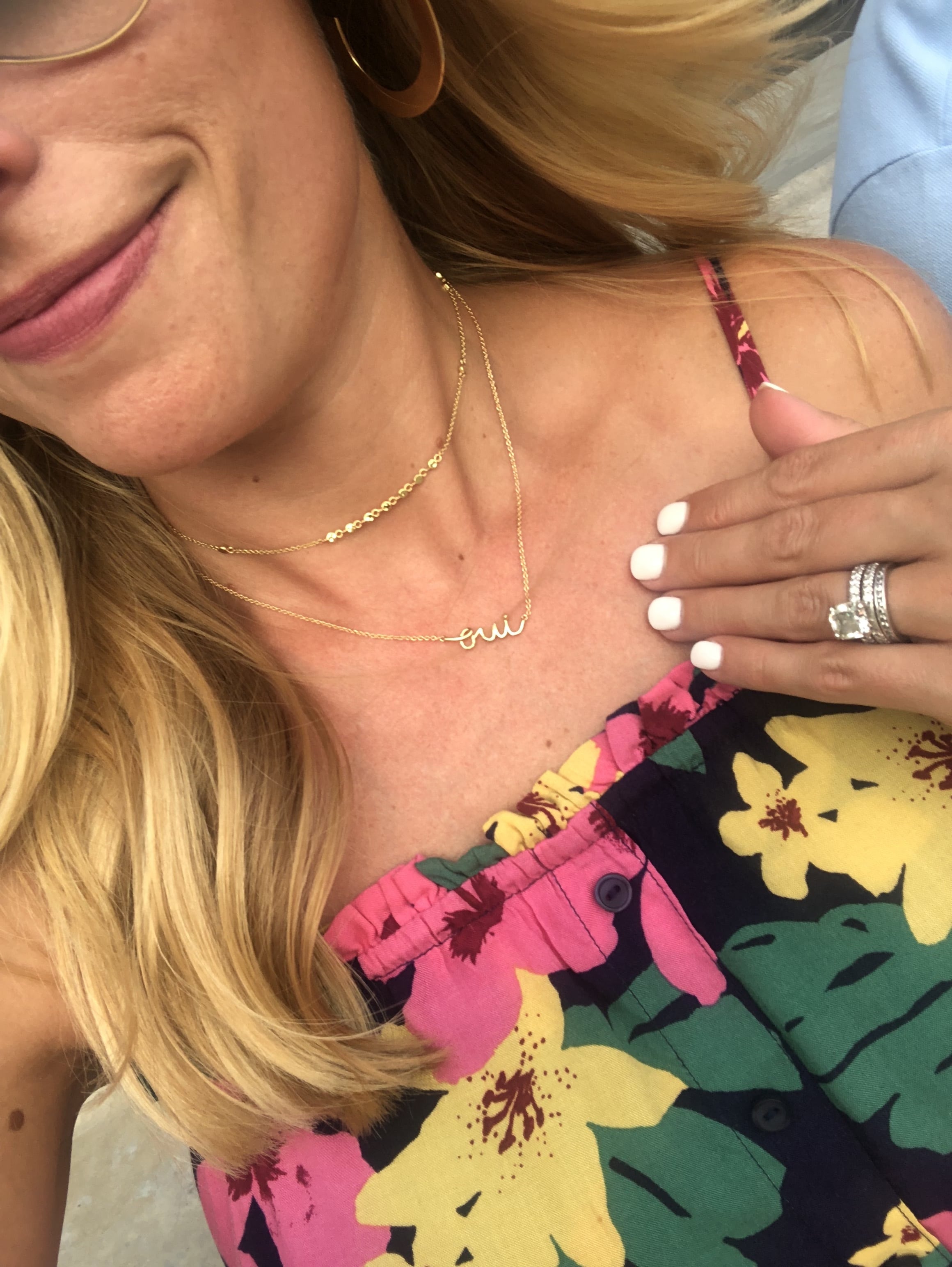 I wore my new favorite necklace on that day! Oui! Isn’t it so cute? Narci gave it to me 🙂 . It’s from Stella & Dot. If you don’t have a rep already, you should reach our to her!! My romper is HERE.