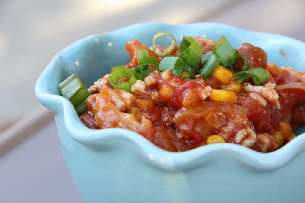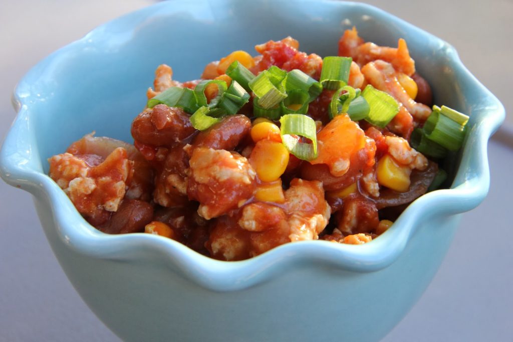 This chili is great because it’s a One Pound Meal (meaning you can use ground beef, ground turkey or ground chicken…on this night, I made it with ground turkey), it’s a One Pot Meal (you won’t have other dirty dishes to clean up), it comes together in minutes, and it’s really delicious!