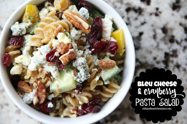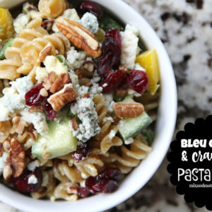 …for the easiest little pasta salad recipe ever! My Bleu Cheese & Cranberry Pasta Salad will have everyone around you jealous during lunch. It’s just so darn good!