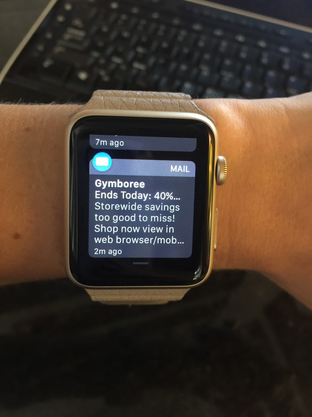 …an email that doesn’t require my immediate attention. I just glance at my wrist, see that it’s not important and keep on doing what I’m doing (which at the moment is typing this post for you!). And if I’m upstairs folding laundry and hear my phone ringing downstairs…instead of running down the stairs and across the house to see if it’s a client/a doctor/my kids’ school (you know, someone important that I need to speak with right away) I can just answer on my wrist…or, if I see that it’s let’s say my dad calling for the 12th time that day to talk about the Red Sox, I can hit “decline” and either call him back later or talk to him when he calls the 13th time ;).