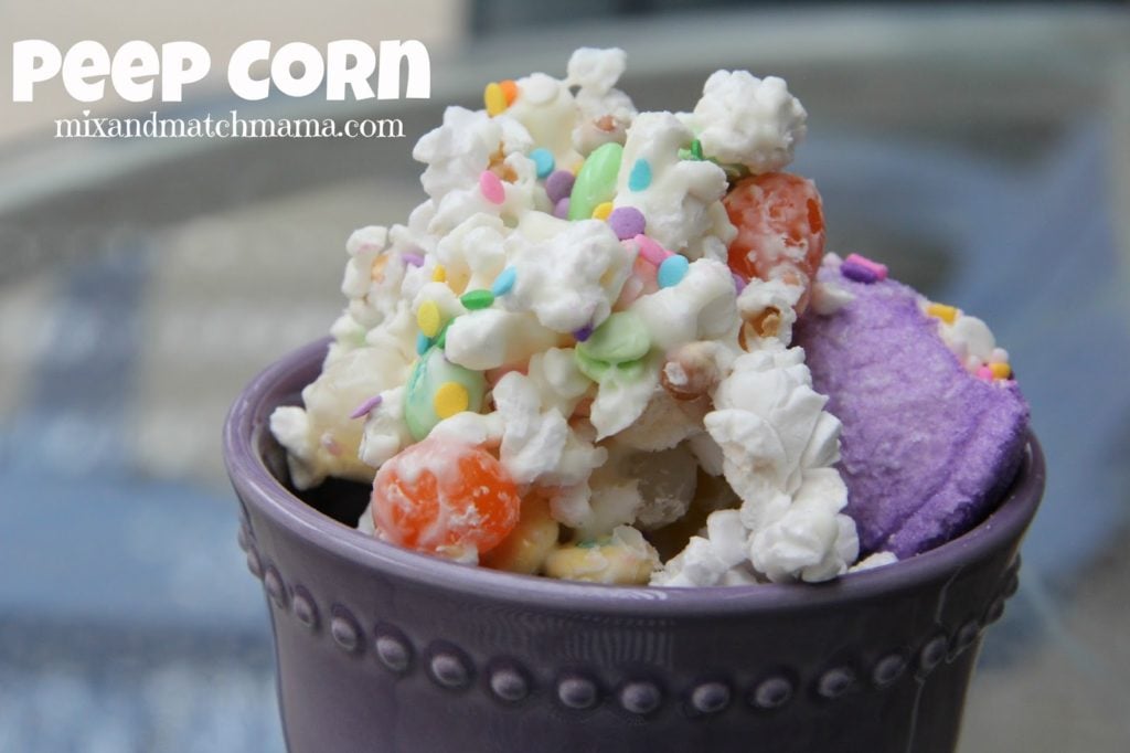 My kids and I had the best time making our Easter Peep Corn! So simple and tastes so delicious! A little popcorn, a little white chocolate, some sprinkles and some Peeps. Who needs popcorn when you can have Peep Corn?!