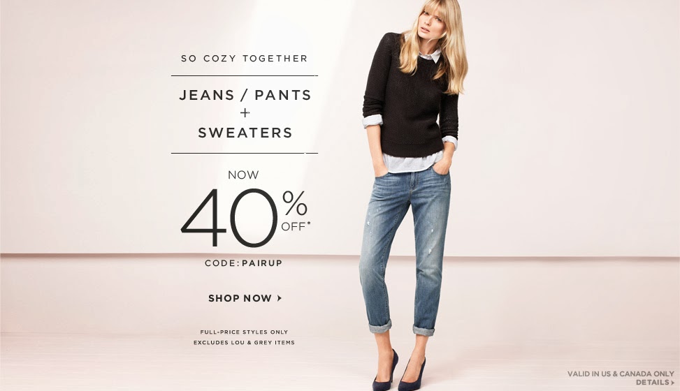 And over at Loft, it’s 40% off sweaters and jeans/pants!