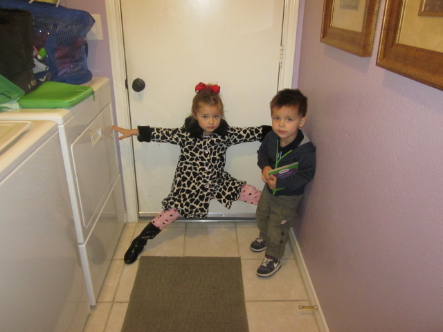 In our house, being the “line leader” is also very important. (I have no idea why???) All it means is that when I say “line up”, that child gets to be the first one into the garage to get in the car. Who cares? They do! Yesterday, we left for the gym at 8:20 and it was Kensington’s day. She’s holding her post.