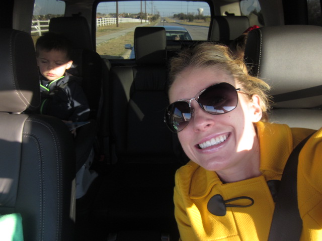 In the car, headed to the gym. Yes, I’m wearing my coat over my gym clothes (it was 20 degrees!). Andrew commented that it was an interesting look. It was.