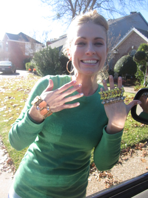 Meanwhile, Sheaffer called me and said that while she was at the mall (she stayed a few minutes later than me), she found me 3 bracelets and would be dropping them off. Sheaffer is great at shopping for others!! So, now I’m on the driveway receiving my 3 new bracelets. She shopped for me and then delivered the merchandise to my house…that’s a pretty awesome friend!