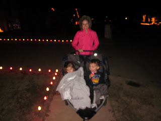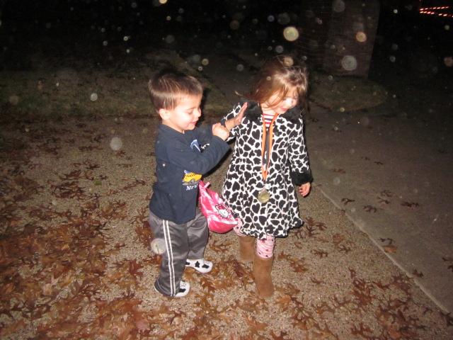 After dinner, we bundled up and walked to the grocery store (I needed some peppermint ice cream for a Mix and Match recipe). We walk after dinner at least 3 nights a week. Andrew was blowing leaves at the kids before we headed off. They loved it!