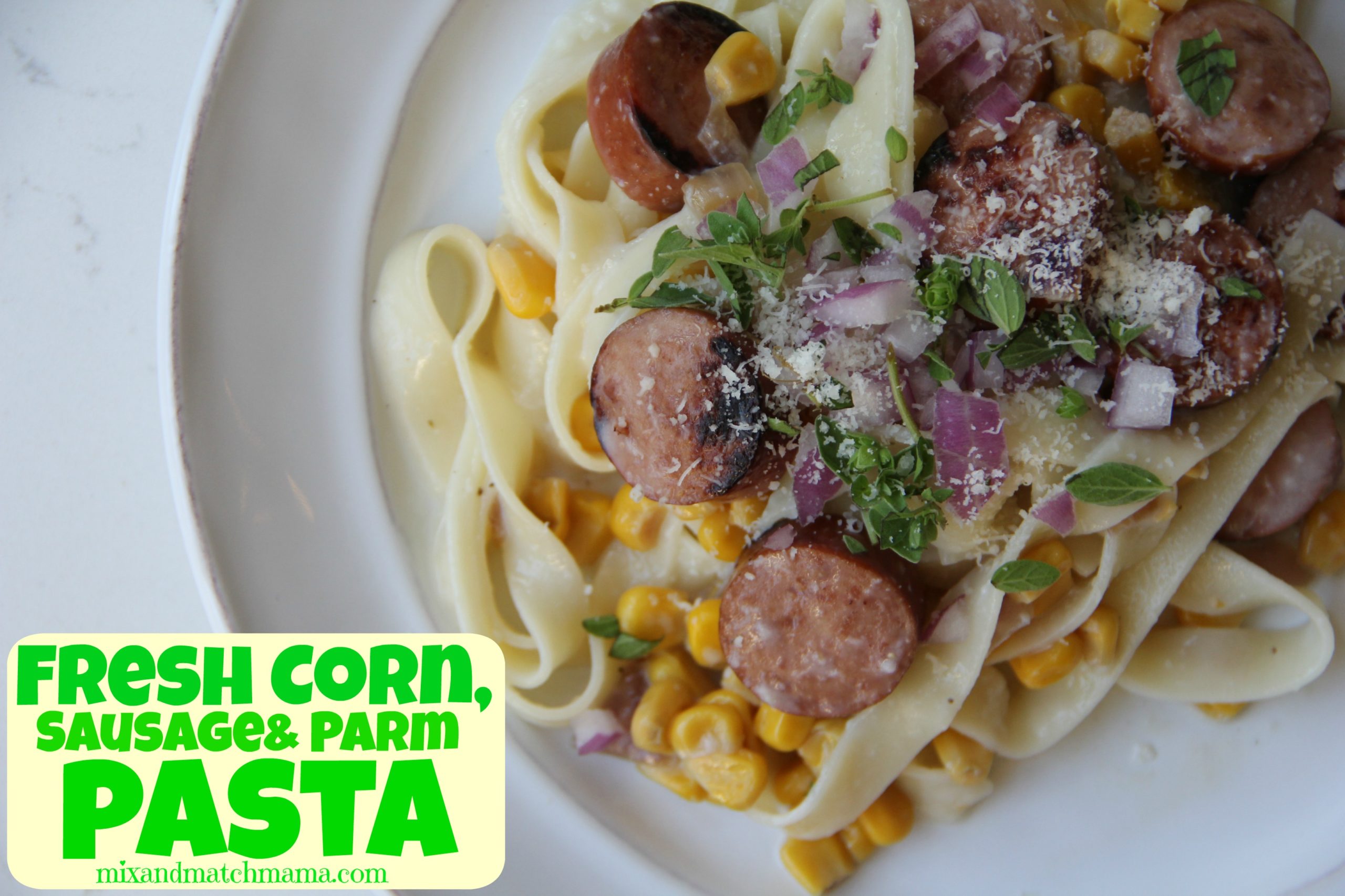Fresh Corn, Sausage & Parm Pasta